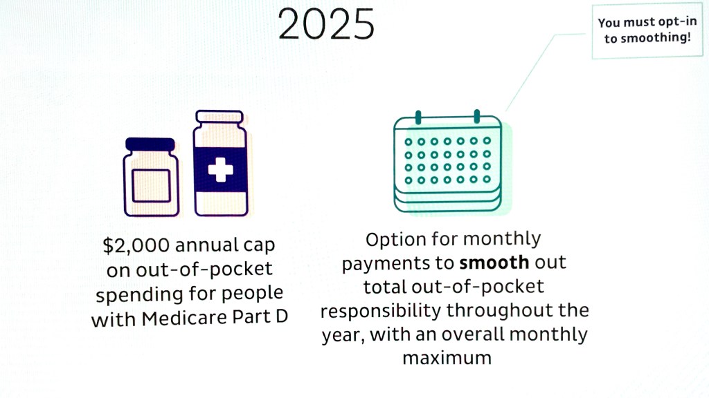 The Inflation Reduction Act’s $35 cap on insulin out-of-pocket costs went into effect in January 2023. Next year will see two important elements of the Inflation Reduction Act being implemented: a $2,000 cap on out-of-pocket costs under Part D and the Prescription Payment Plan, sometimes called the “smoothing” program, where beneficiaries with Medicare Part D drug coverage will have the option to pay out-of-pocket costs in monthly payments spread out over the year.